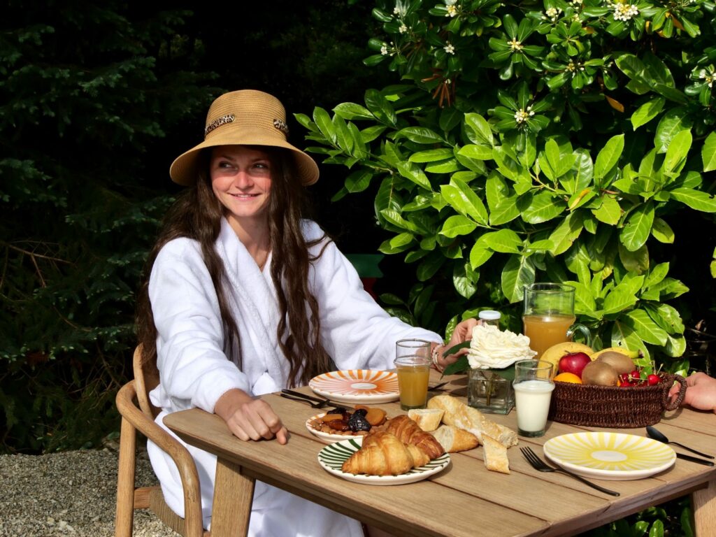 Et pour ceux qui décident de prolonger leur visite dans nos hébergements de charme, savourez un délicieux petit-déjeuner au bord de la piscine et à l’ombre de nos grands arbres.